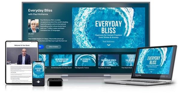 The Everyday Bliss program is a 21-day journey towards lifelong freedom from stress, hosted on the Mindvalley Quests learning platform. In just 15 minutes or less a day, you’ll experience Paul McKenna’s signature tools and techniques for reprogramming your mind and body’s response towards stress.